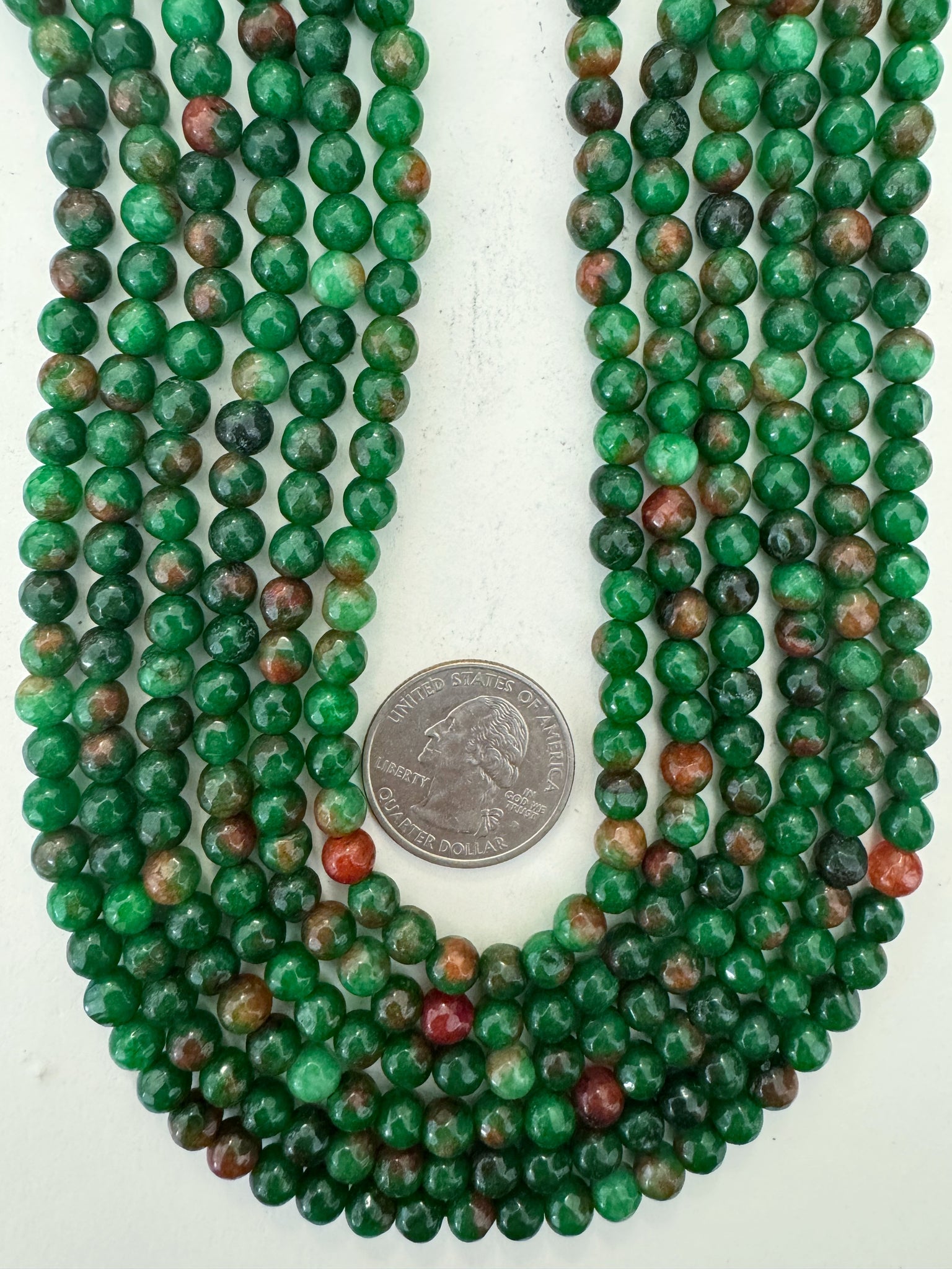 emerald green dark red orange enhanced quartz, 6mm faceted round, 15" strand, sold per strand
