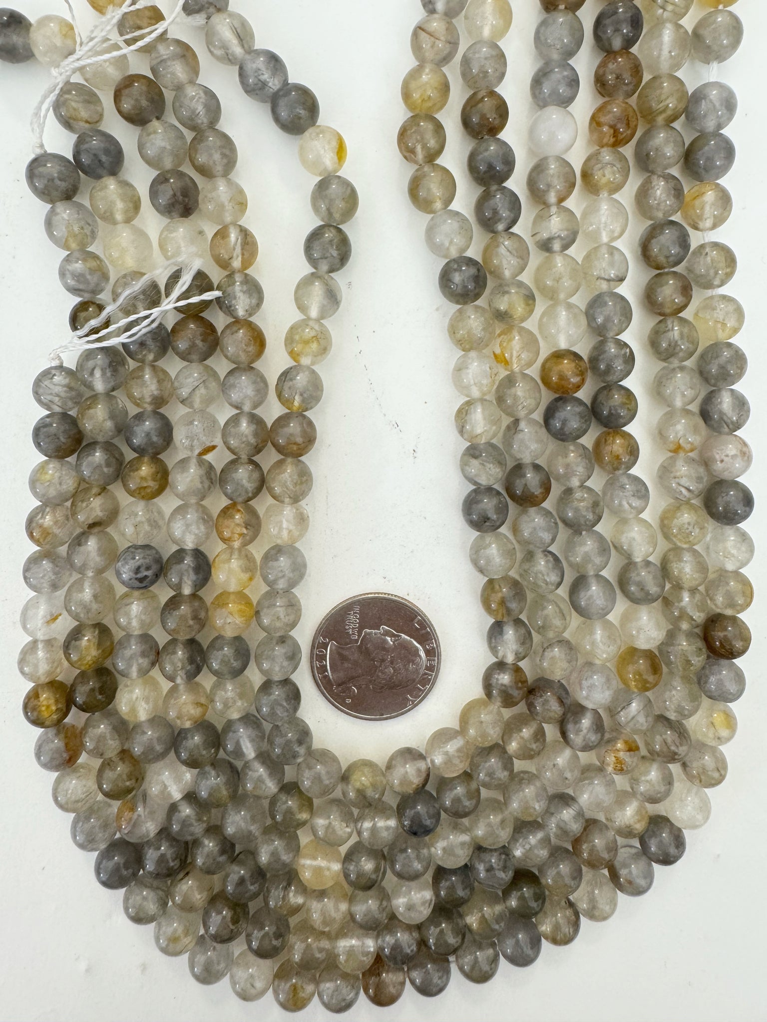 golden gray cloudy quartz, 8mm round, 15" strand, sold per strand