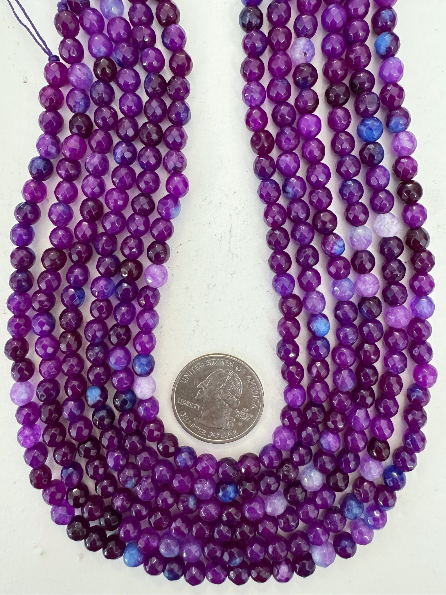 grape purple blue enhanced quartz, 6mm faceted round, 15" strand, sold per strand