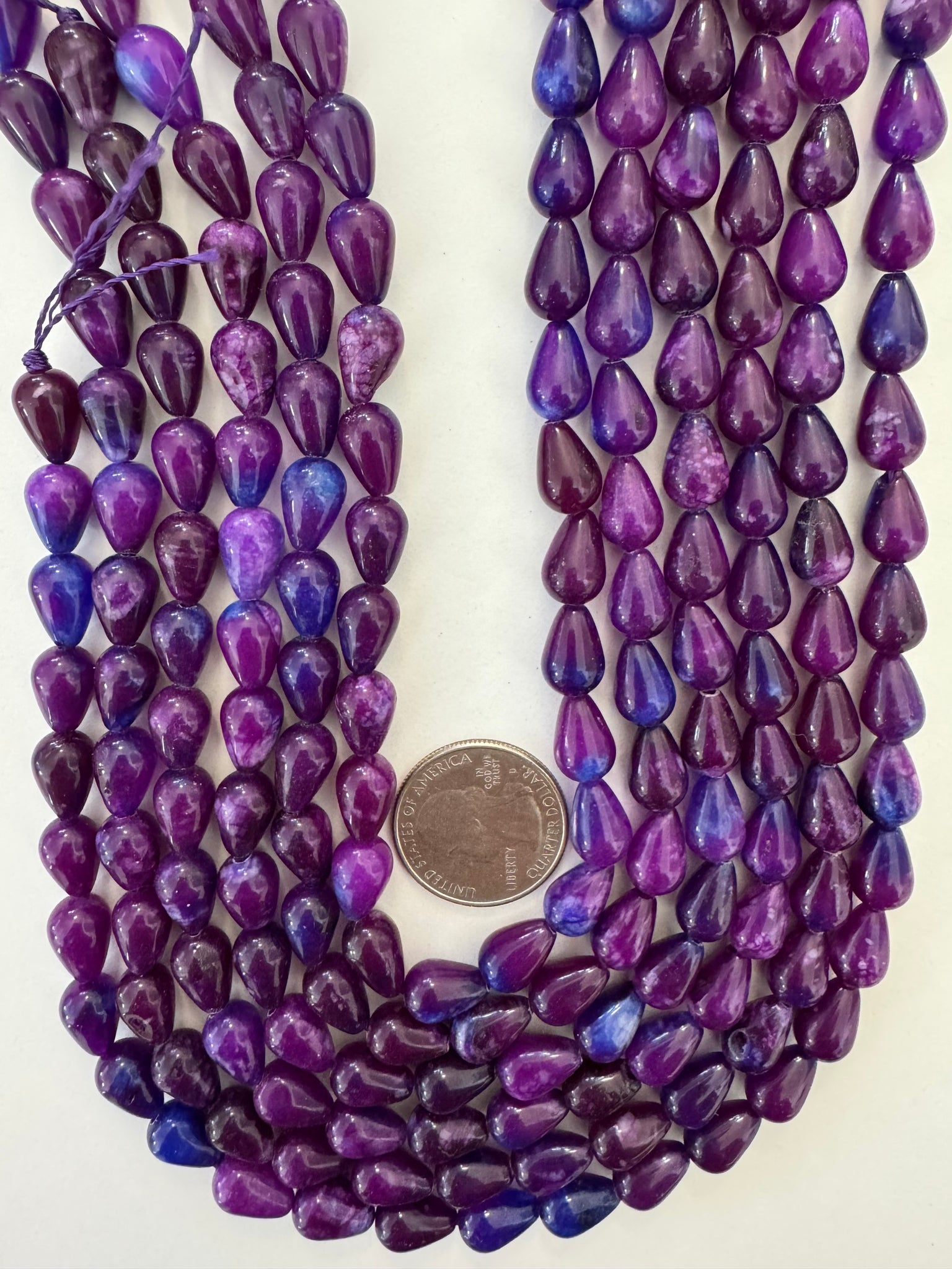 grape purple blueberry blue color enhanced quartz, 12x8mm pear teardrop, 15" strand, sold per strand