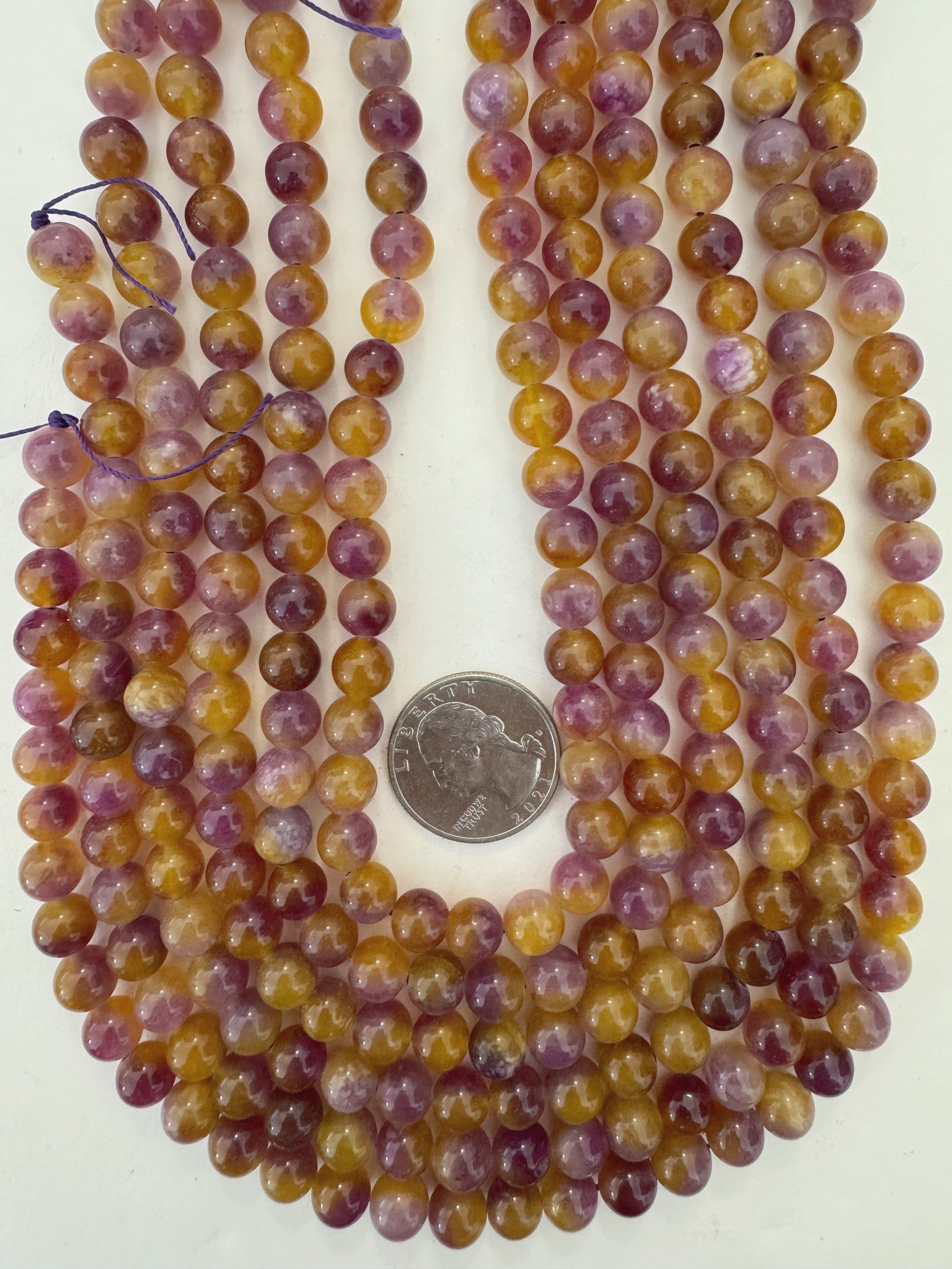 grape purple yellow enhanced quartz, 8mm round, 15" strand, sold per strand