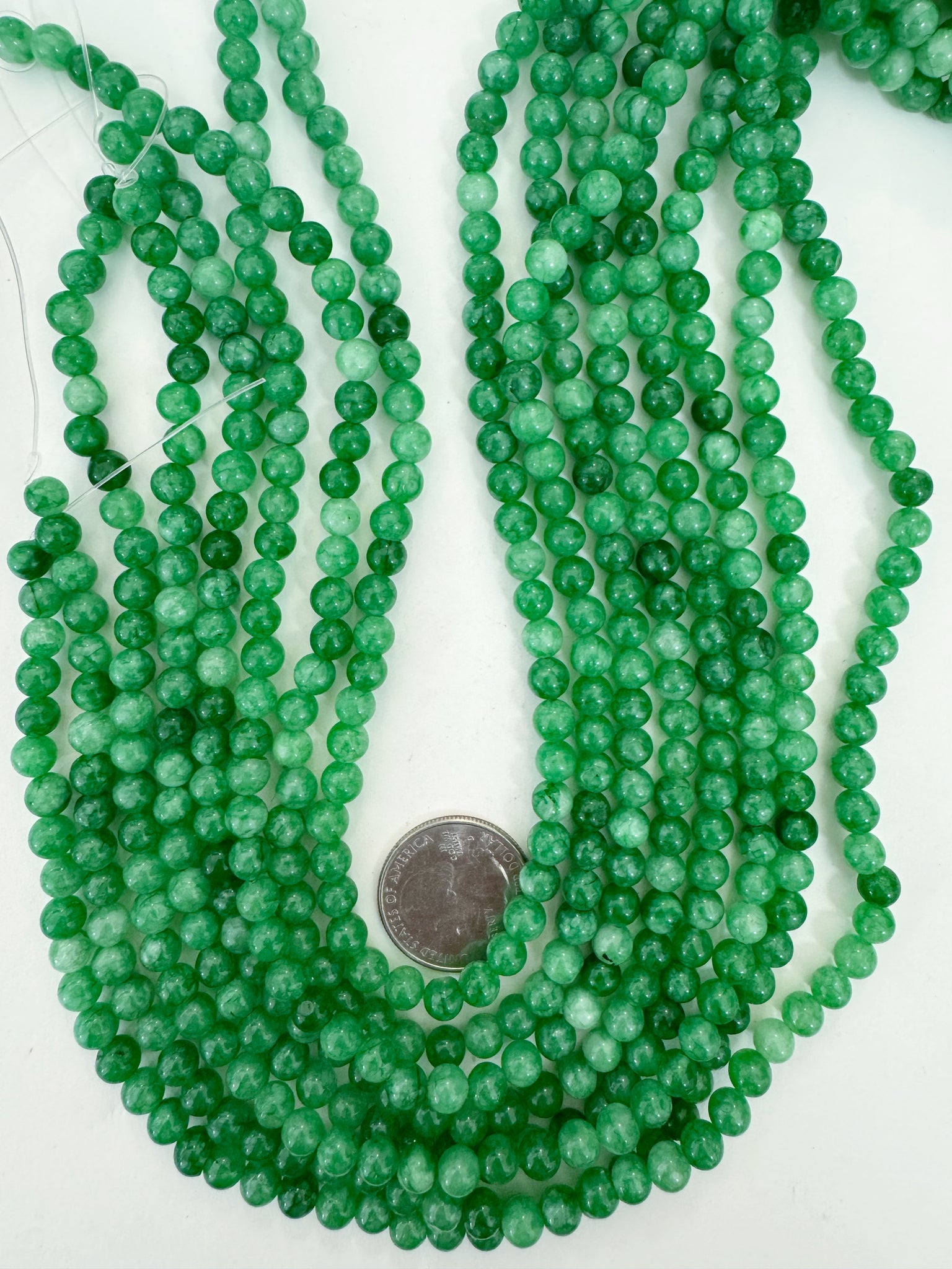 light dark green mix color enhanced quartz, 6mm round, 15" strand, sold per strand