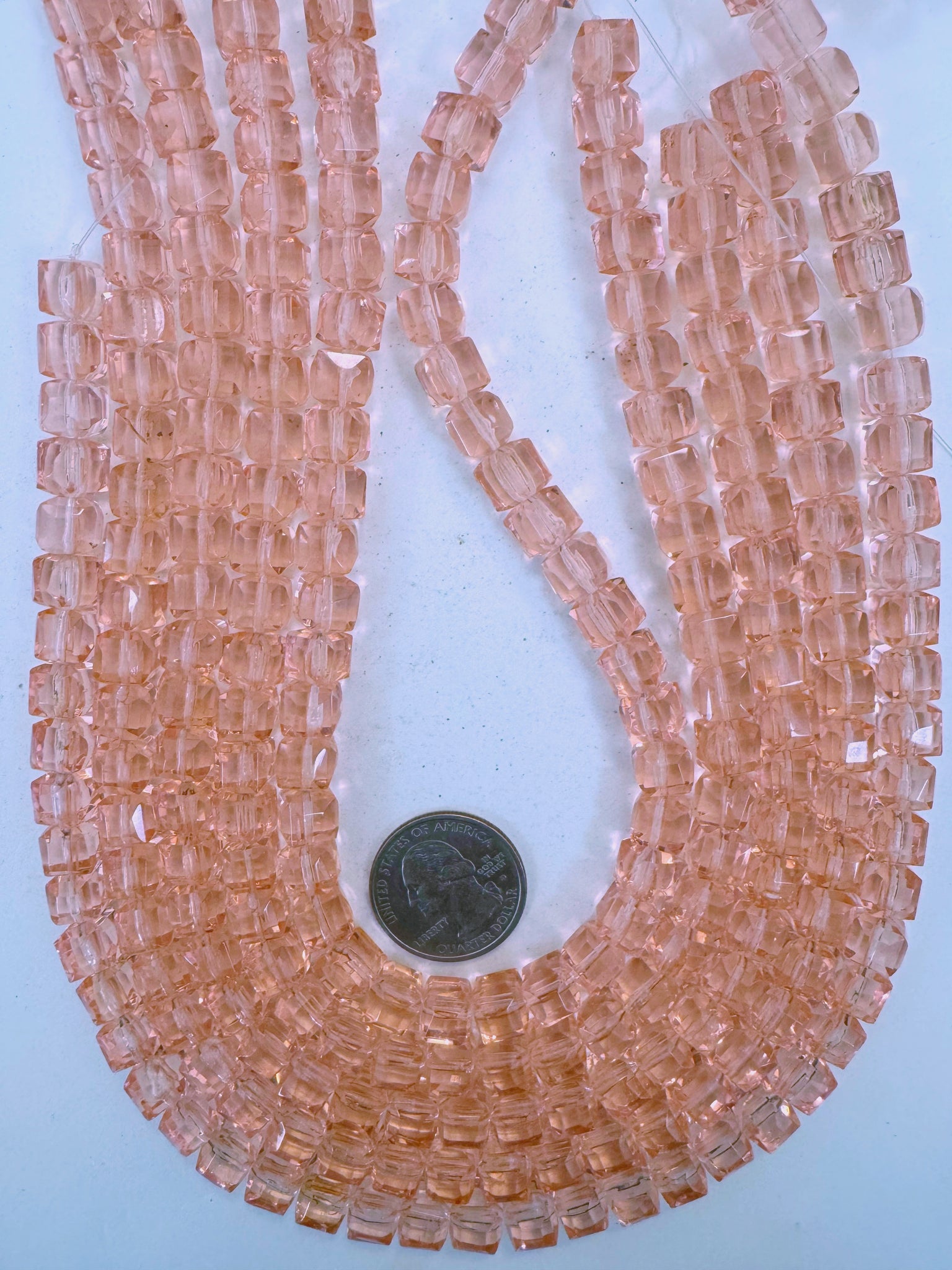 pale pink peach, single color, vintage look glass, 8mm faceted cube, 15" strand, sold per strand