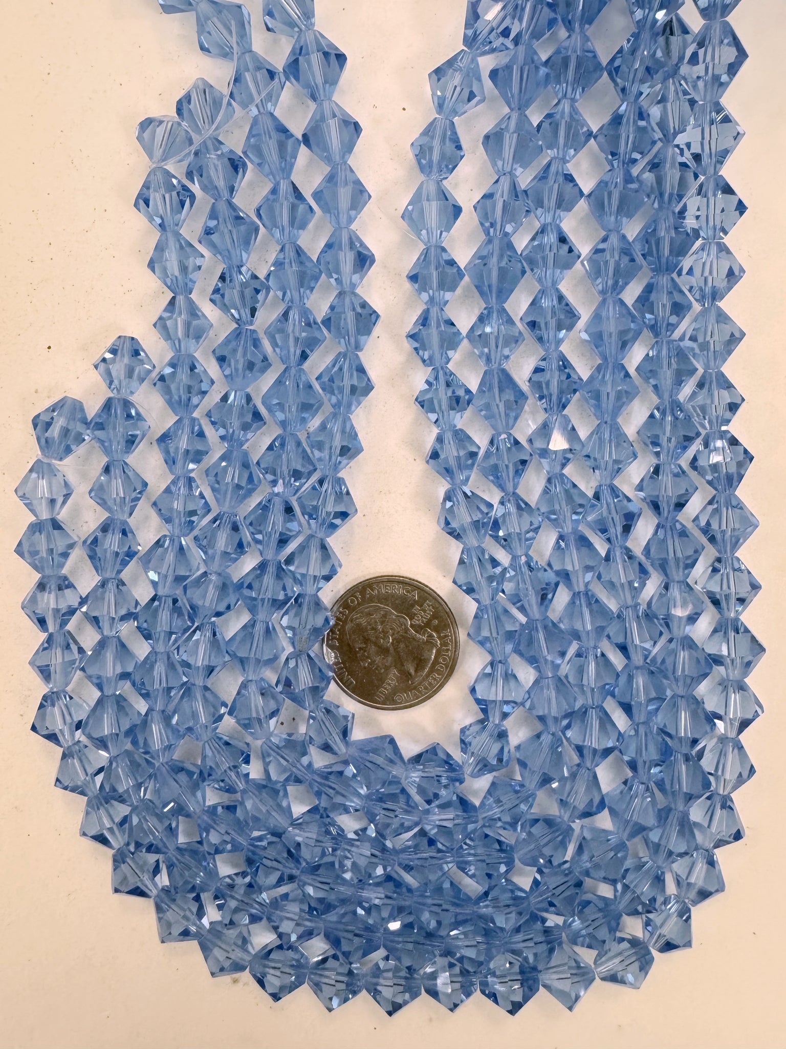 periwinkle blue, single color, vintage look glass, 10mm faceted bicone, 14" strand, sold per strand